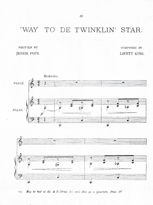 | Extra Information | One of Lovett King's famous Plantation Songs. His set of songs became one of the most famous Plantation Songs, being performed up and down the country, alongside of Alfred Scott Gatty and Corney Grain's plantation songs. Any objections should be directed to my Important Notice on my profile. |