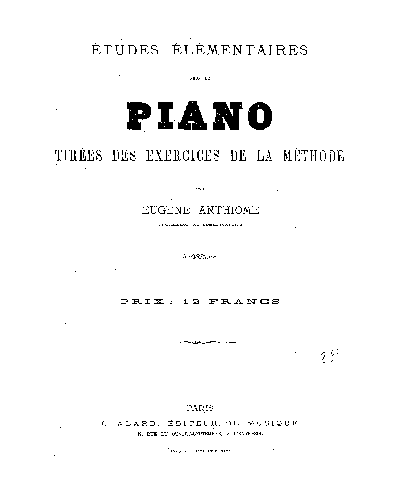| Alternative. Title | Études élémentaires pour le piano: tirées des exercices de la Méthode |