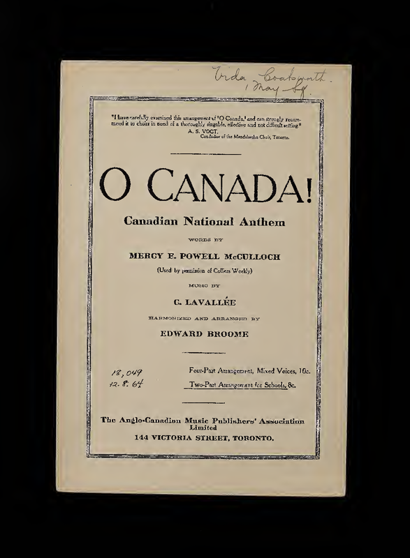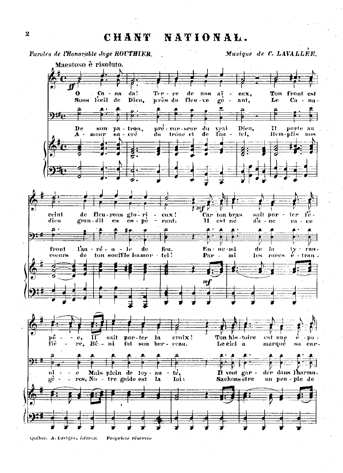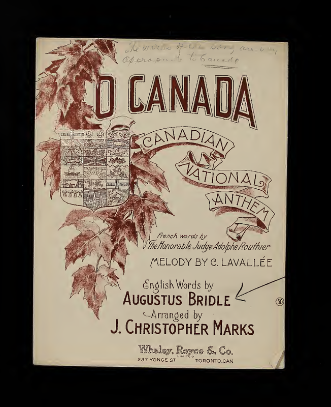 | Librettist | French: Adolphe Basile Routhier (1839-1920) English: Robert Stanley Weir (1856-1926) English (alternate): Ewing Buchan English (alternate): Mercy E. Powell McCulloch English (alternate): Augustus Bridle English (alternate): Ed. Teschemacher |