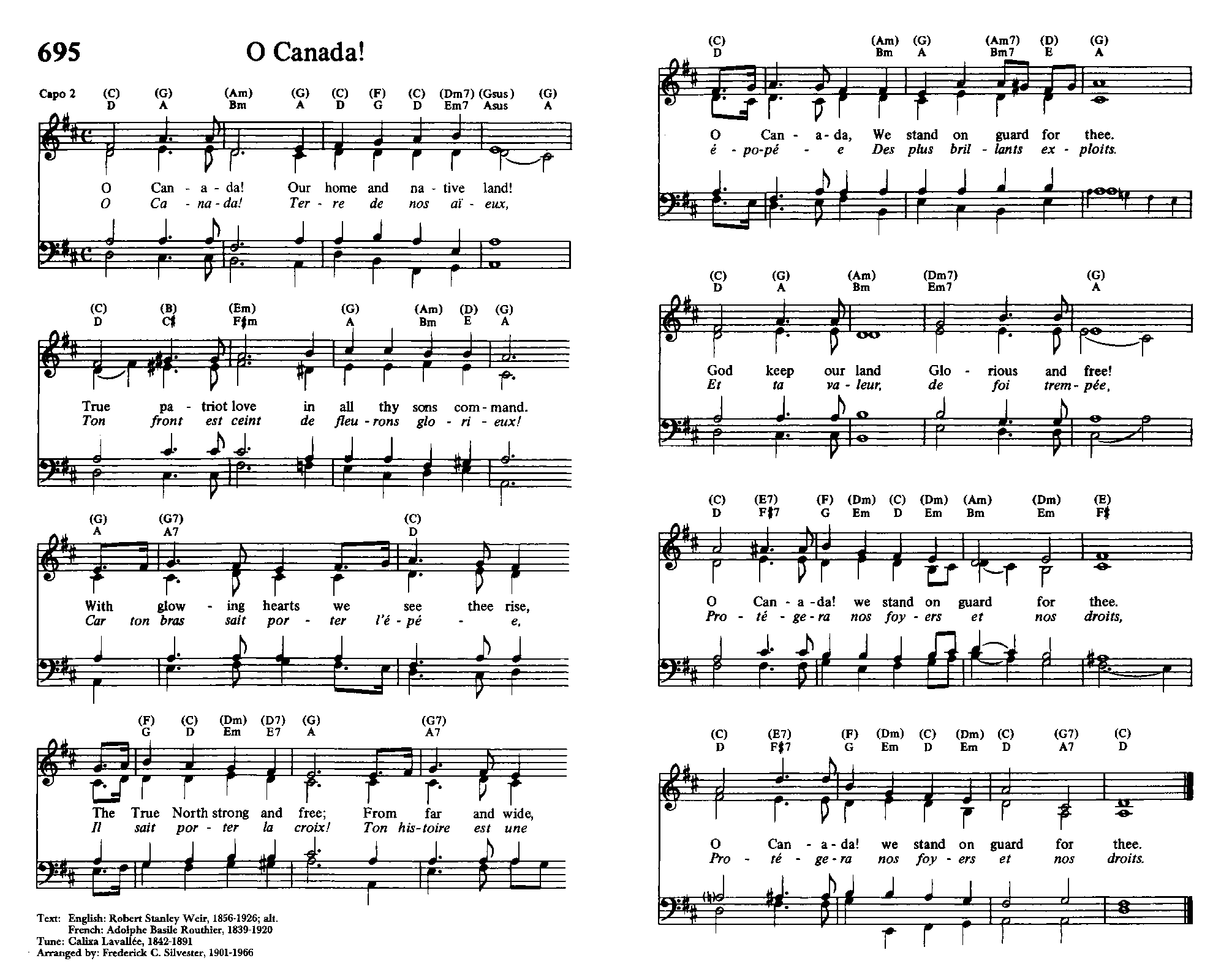 | Extra Information | Canada's national anthem. An English translation appeared only in 1906. A distinct English text was proposed in 1908 by Robert Stanley Weir. This text, which was slightly altered in 1927, 1980, and 2018, is the one used today in English Canada.
