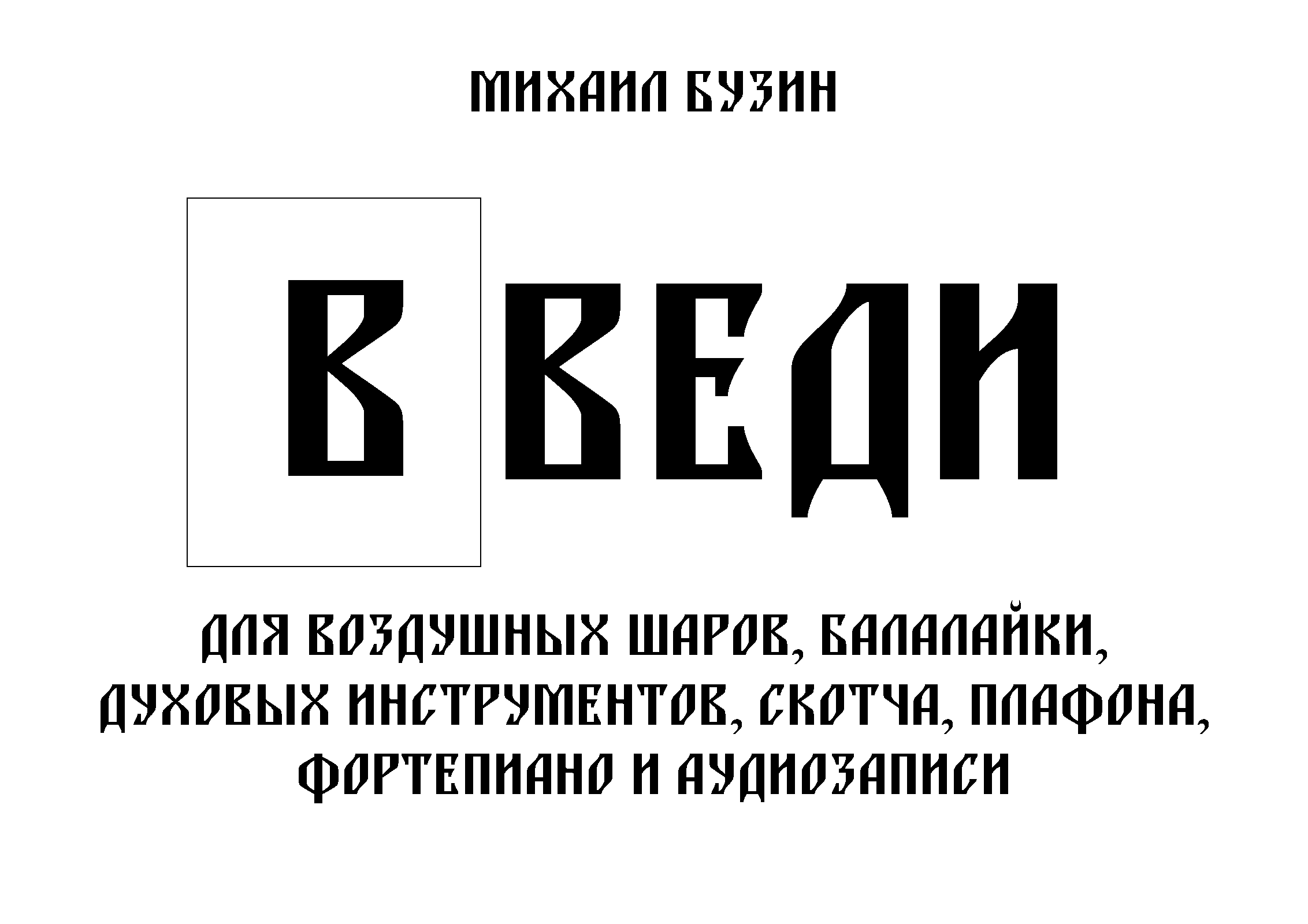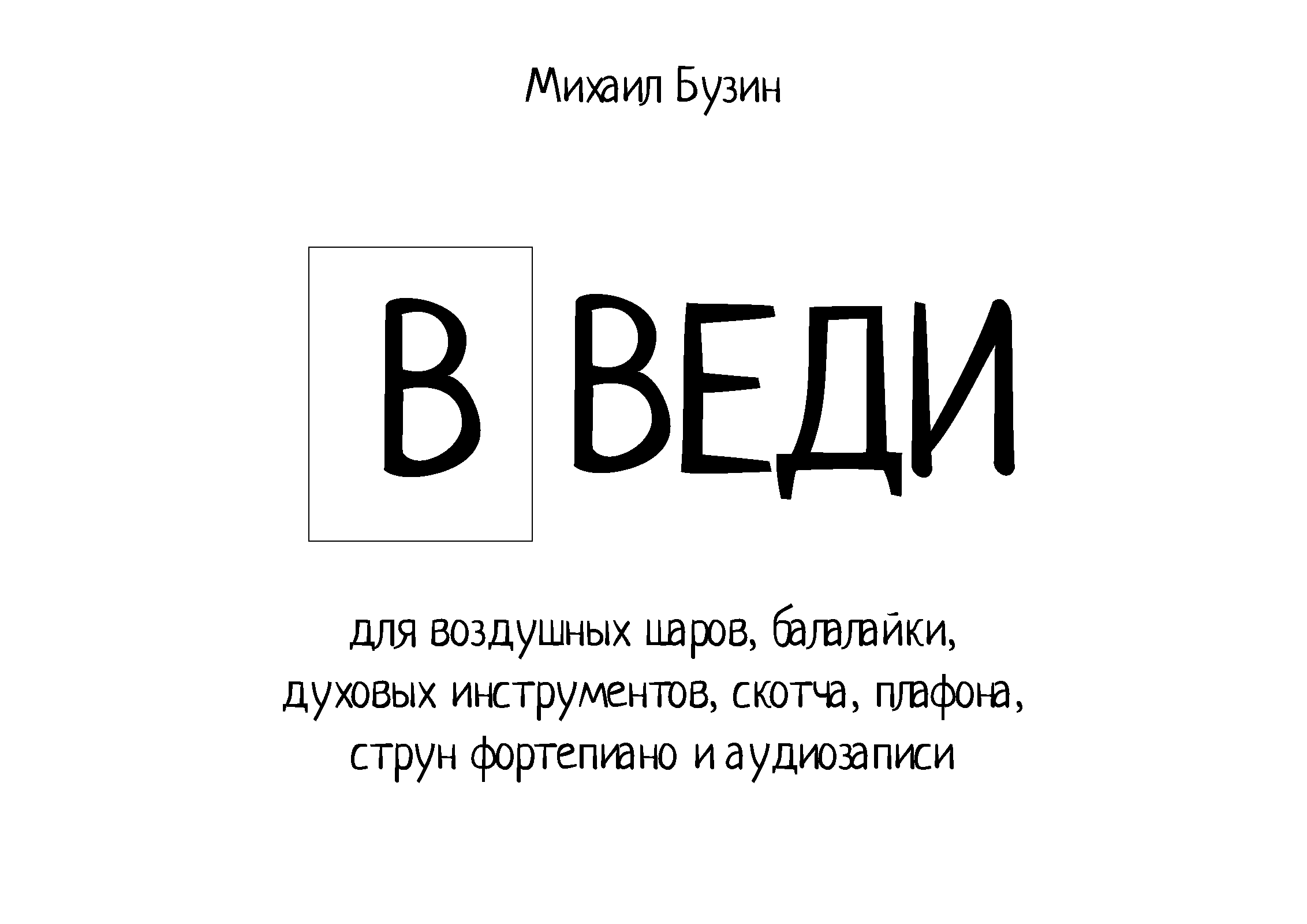| Alternative. Title | В (Vijedi) for air balloons, balalaika, wind instruments, duct tape, glass, piano and tape |