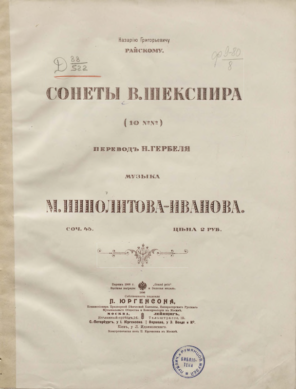 Moscow: P. Jurgenson, n.d. Plate 32348-57