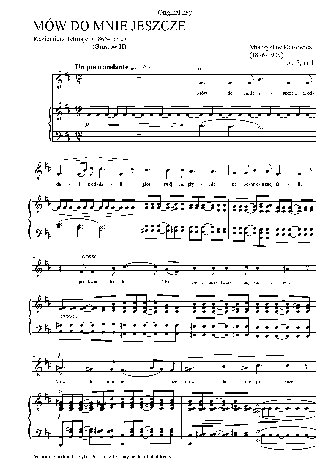 ⇒ 6 more: 1. Mów do mnie jeszcze • 2. Z erotyków • 3. Idzie na pola • 4. Na spokojnym, ciemnym morzu • 5. Śpi w blaskach nocy • 6. Przed nocą wieczną