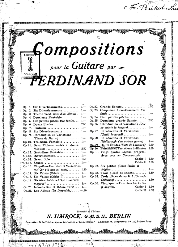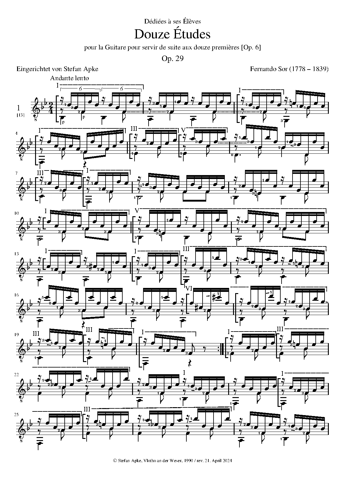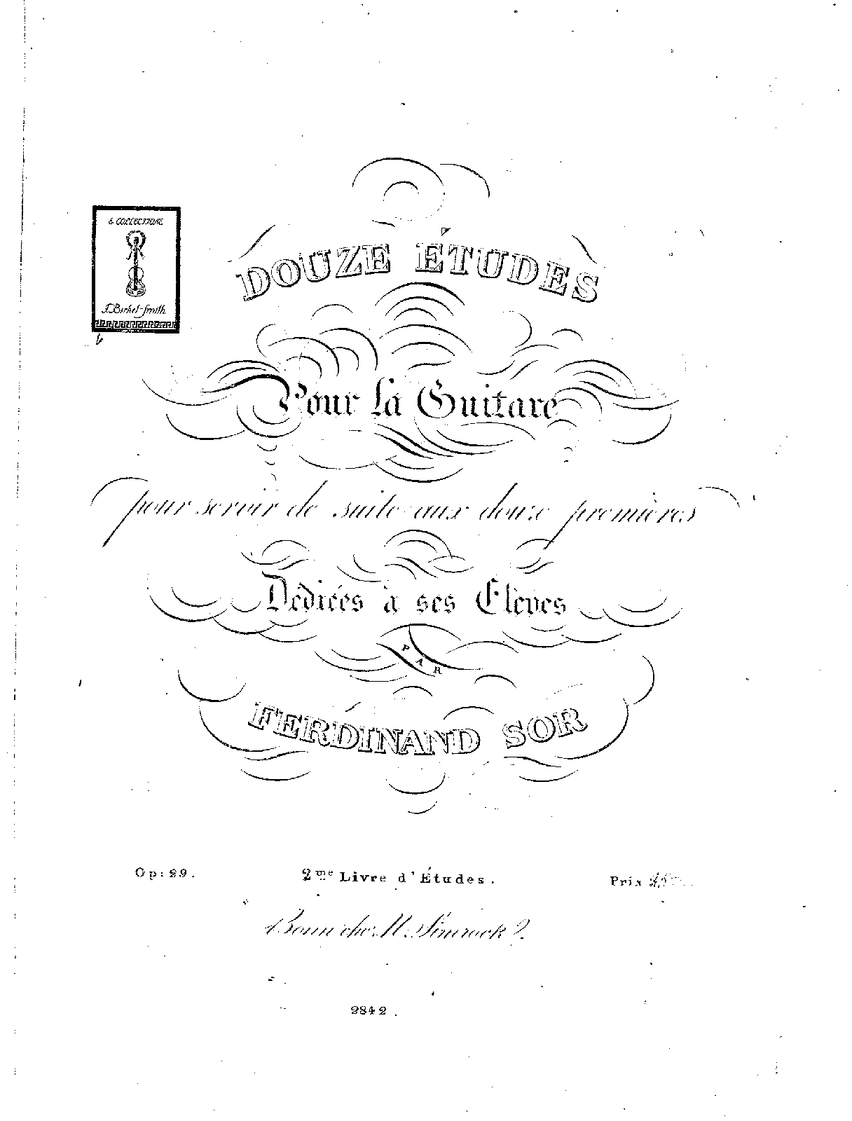 | Alternative. Title | 12 Etudes pour la Guitare pour servir de suite aux 12 premières |