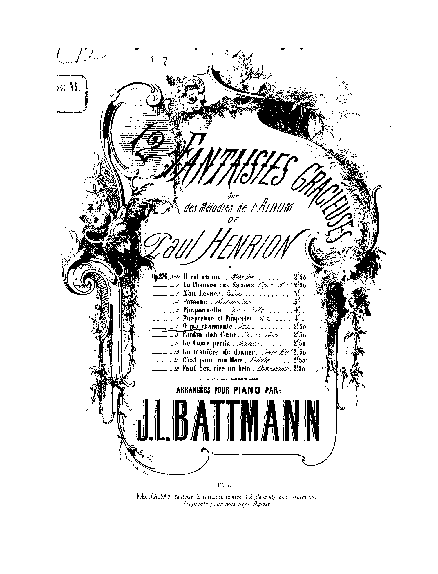 | Alternative. Title | Douze fantaisies gracieuses sur des mélodies de l'album de Paul Henrion |