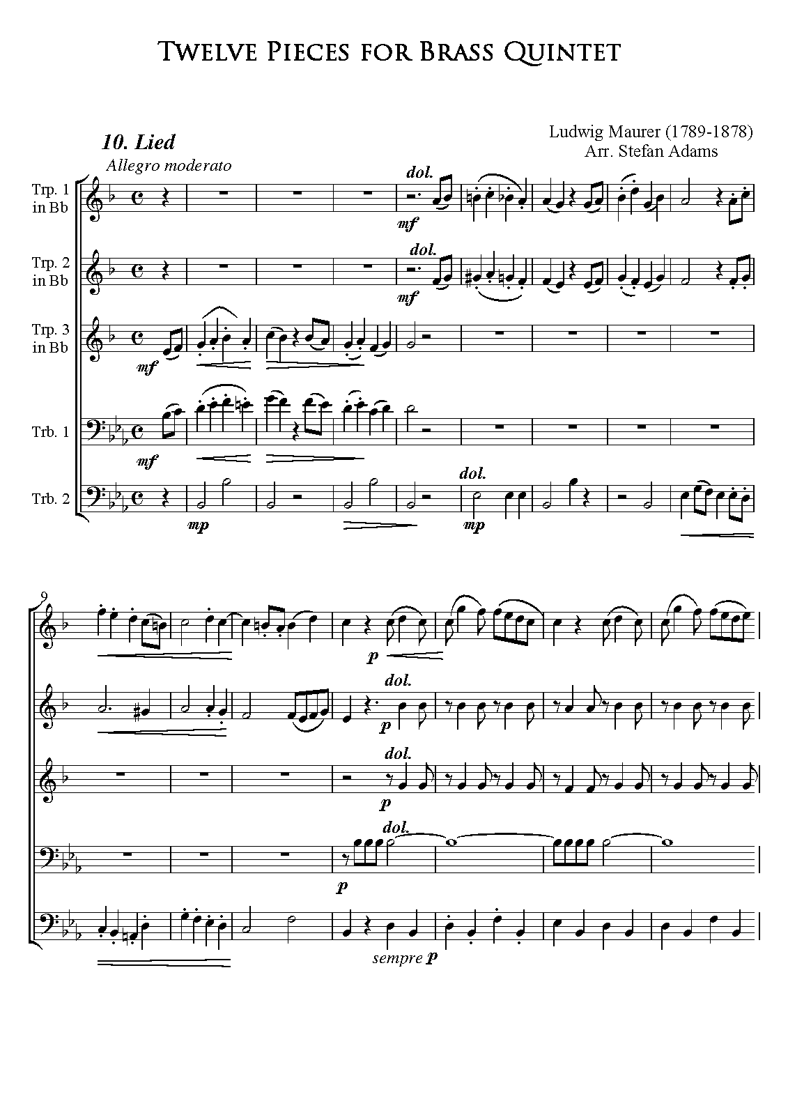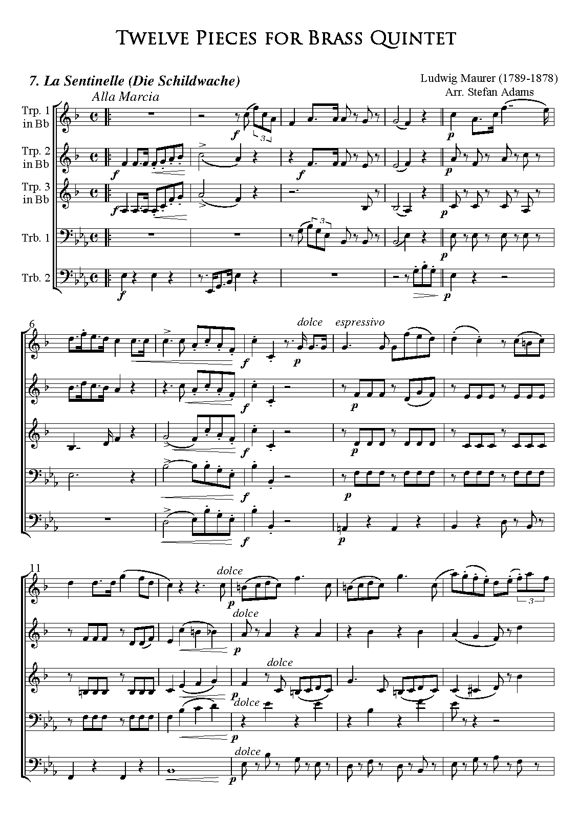 Pieces 1-4 & 11 are commonly referred to as "Five pieces for brass".
