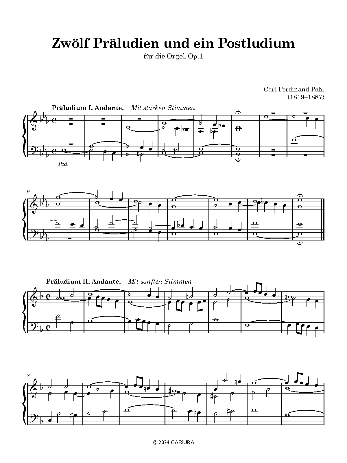 | Alternative. Title | Zwölf Präludien und ein Postludium für die Orgel, Op.1 |