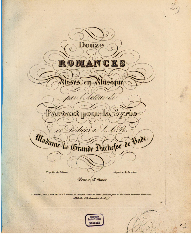 Douze Romances mises en musique par l'auteur de Partant pour la Syrie