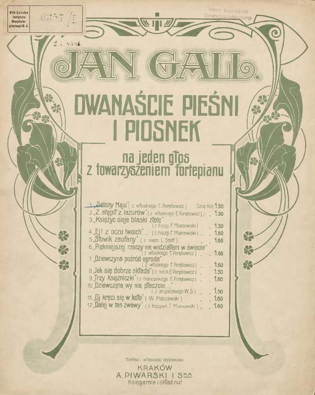 ⇒ 10 more: 2. Zstąpił z lazurów księżyc • 3. Księżyc sieje blaski złote • 4. Ej! Z ocu twoich • 6. Piękniejszej rzeczy nie widziałem w świecie • 7. Dziewczyna pośród ogroda • 8. Jak się dobrze składa • 9. Trzy księżniczki • 10. Dziewczęta wy nie płaczcie • 11. Oj kręci się w koło • 12. Dalej w tan żwawy