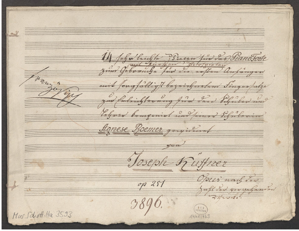 | Alternative. Title | 14 sehr leichte Klavierstücke für das Piano Forte mit kurtzen Vorspielen zum Gebrauche für die ersten Anfänger mit sorgfältigst bezeichnetem Fingersatze zur Erleichterung für den Schüler und Lehrer komponirt |
