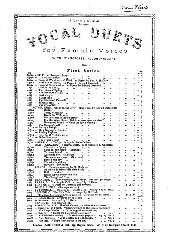 | Genre Categories | Melodies; Songs; For voice, piano; |