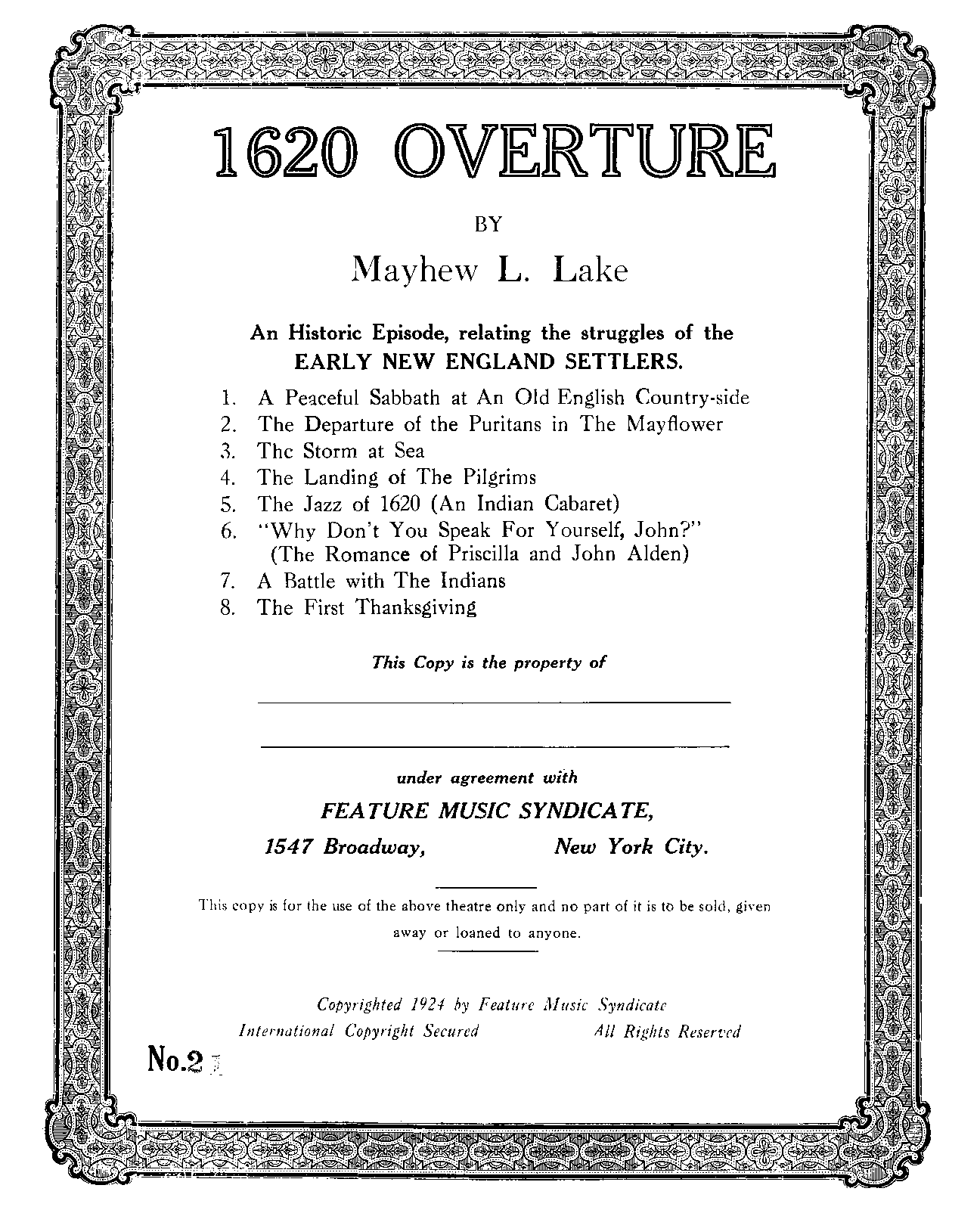 Publisher. Info. New York: Feature Music Syndicate, 1924.