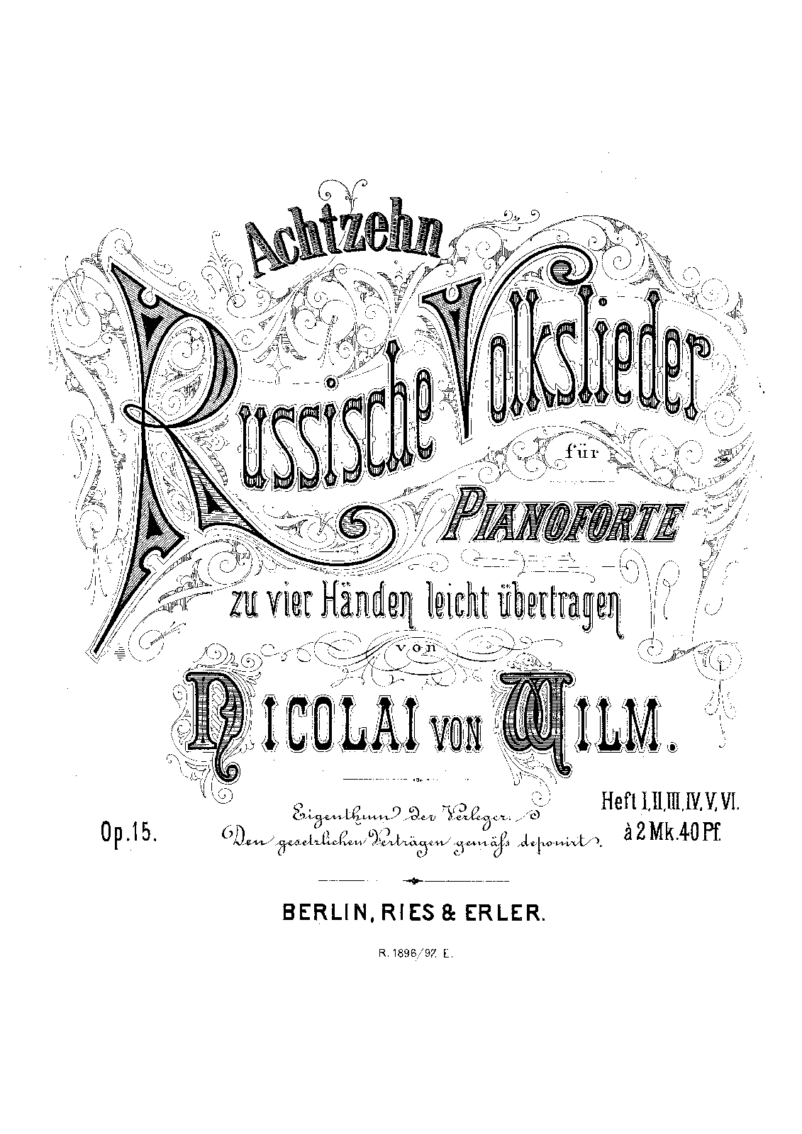 | Alternative. Title | Achtzehn Russische Volkslieder für Pianoforte zu vier Händen leicht übertragen |