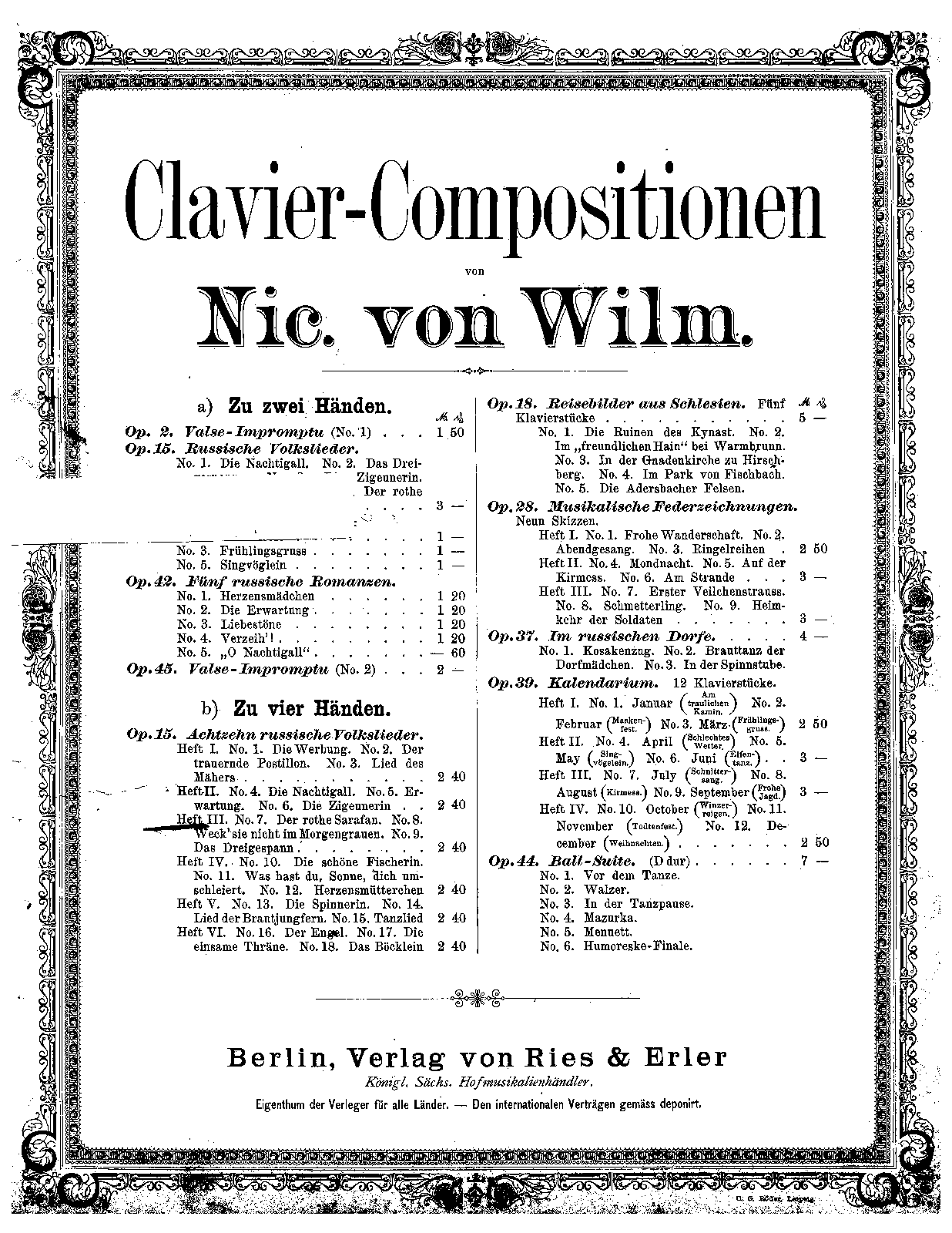 | Composer | Wilm, Nicolai von |