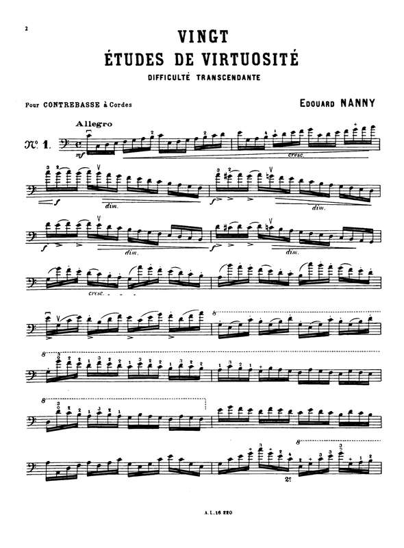 | Alternative. Title | Vingt Études de virtuosité - Difficulté transcendante - pour contrebasse à cordes 20 Virtuosic Etudes |