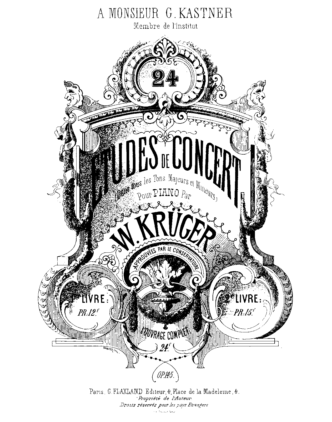 The immediately preceding Op., 144, belongs to Krüger's sonata for violin or cello and piano, published by Flaxland in 1867 with plate W.K. 9.