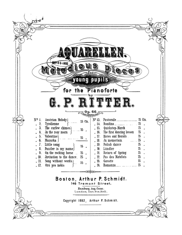 ⇒ 8 more: 10. Invitation to the Dance (Tempo di Menuetto in D major) • 11. Song without Words and 12. Ora pro nobis • 13. Pastorale (Poco andante, G major) • 14. Rondino (Allegretto in C major) • 17. Hares and Hounds/Häsen und Hunde (Humoreske, Molto vivace, G major) • 18. In memoriam (Marche funèbre, C minor) • 22. Pas des matelots / Matrosentanz • 24. Romanza (Andantino in A major)