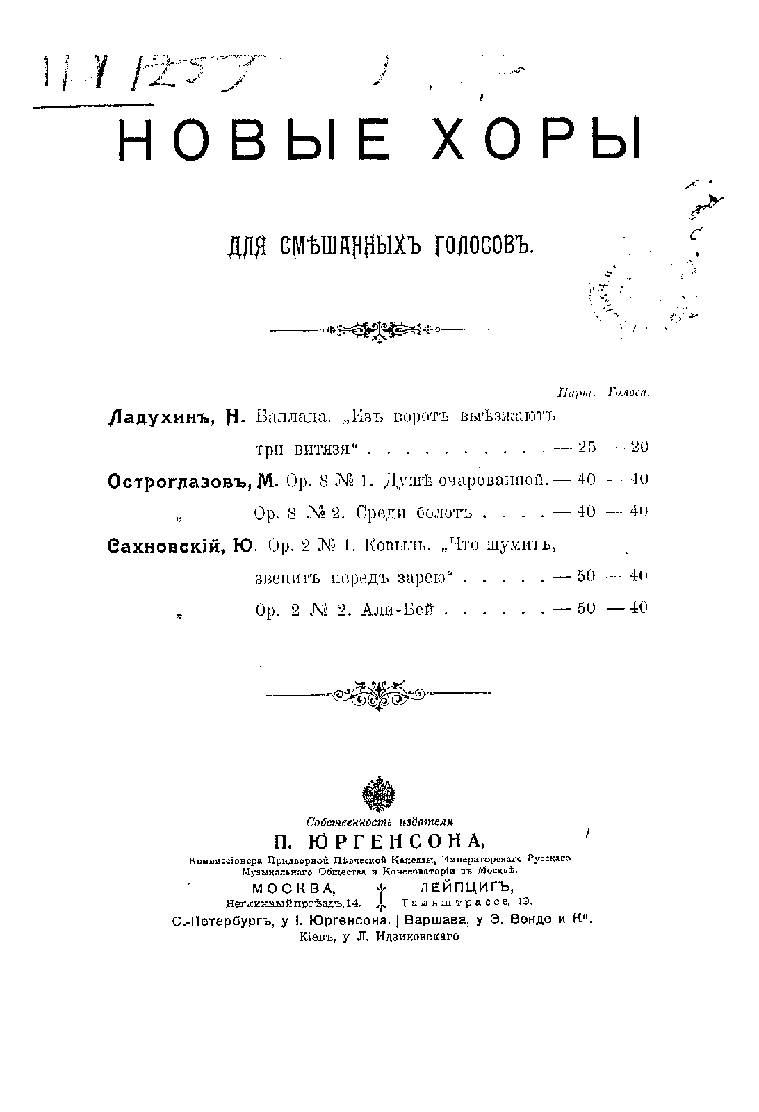 | Genre Categories | Secular choruses; Choruses; For voice, mixed chorus, piano; |
