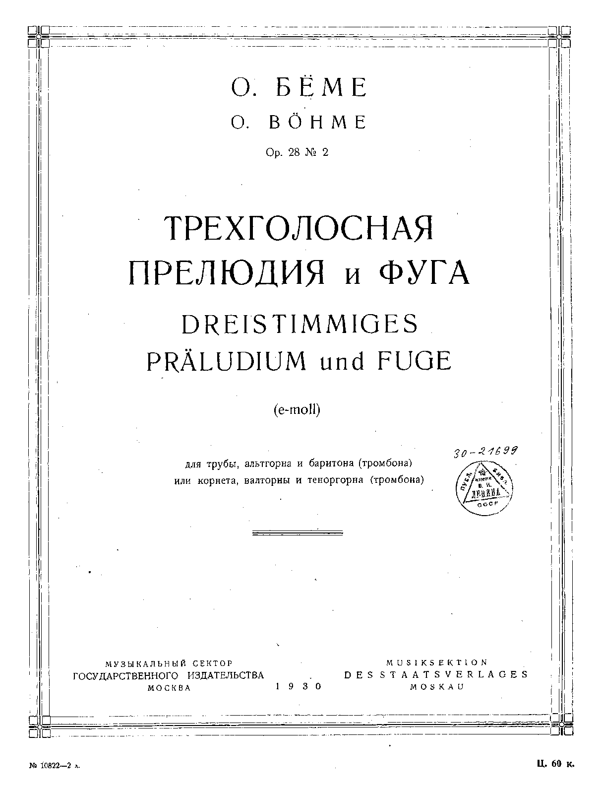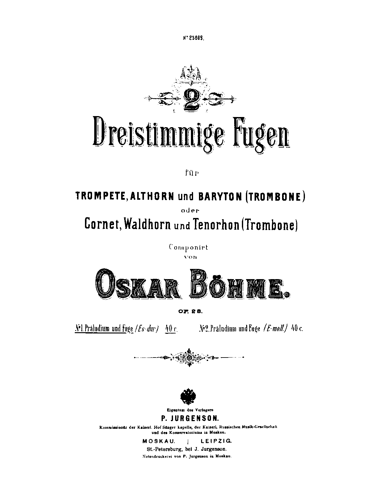 2 Dreistimmige Fugen, Op.28 (Böhme, Oskar)