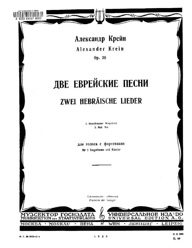 | Alternative. Title | Две еврейские песни; Zwei hebräische lieder |