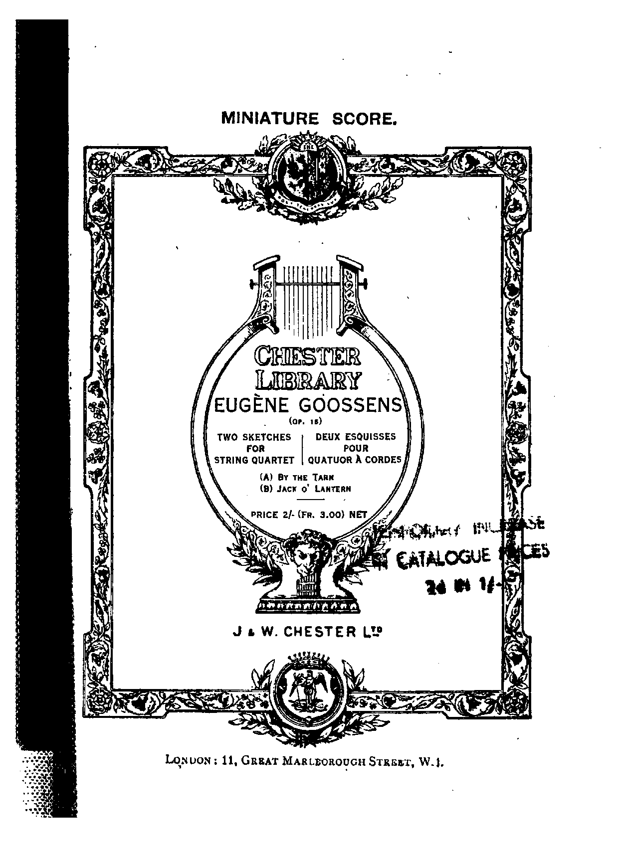 | Genre Categories | Sketches; For 2 violins, viola, cello; Scores featuring the violin; |
