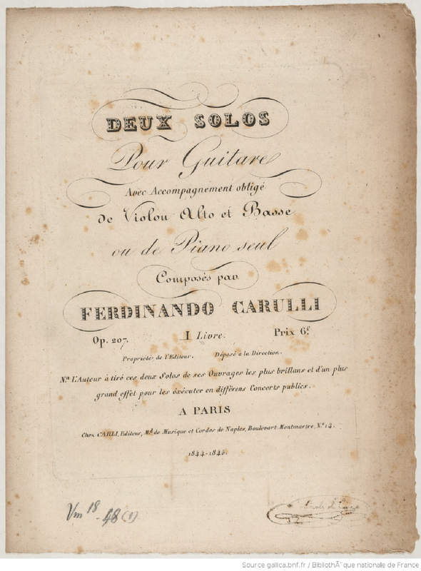 | Alternative. Title | 2 Solos pour Guitare avec accompagnement obligé de Violon, Alto et Basse ou de Piano seul |