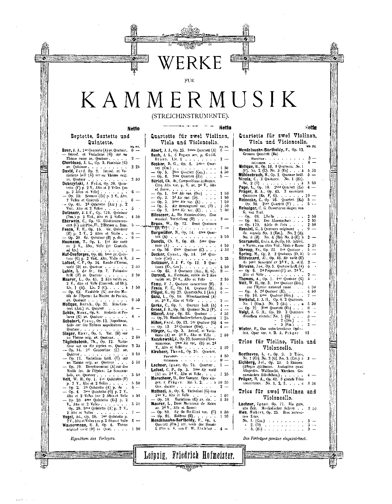 | Genre Categories | Quartets; For 2 violins, viola, cello; Scores featuring the violin; |