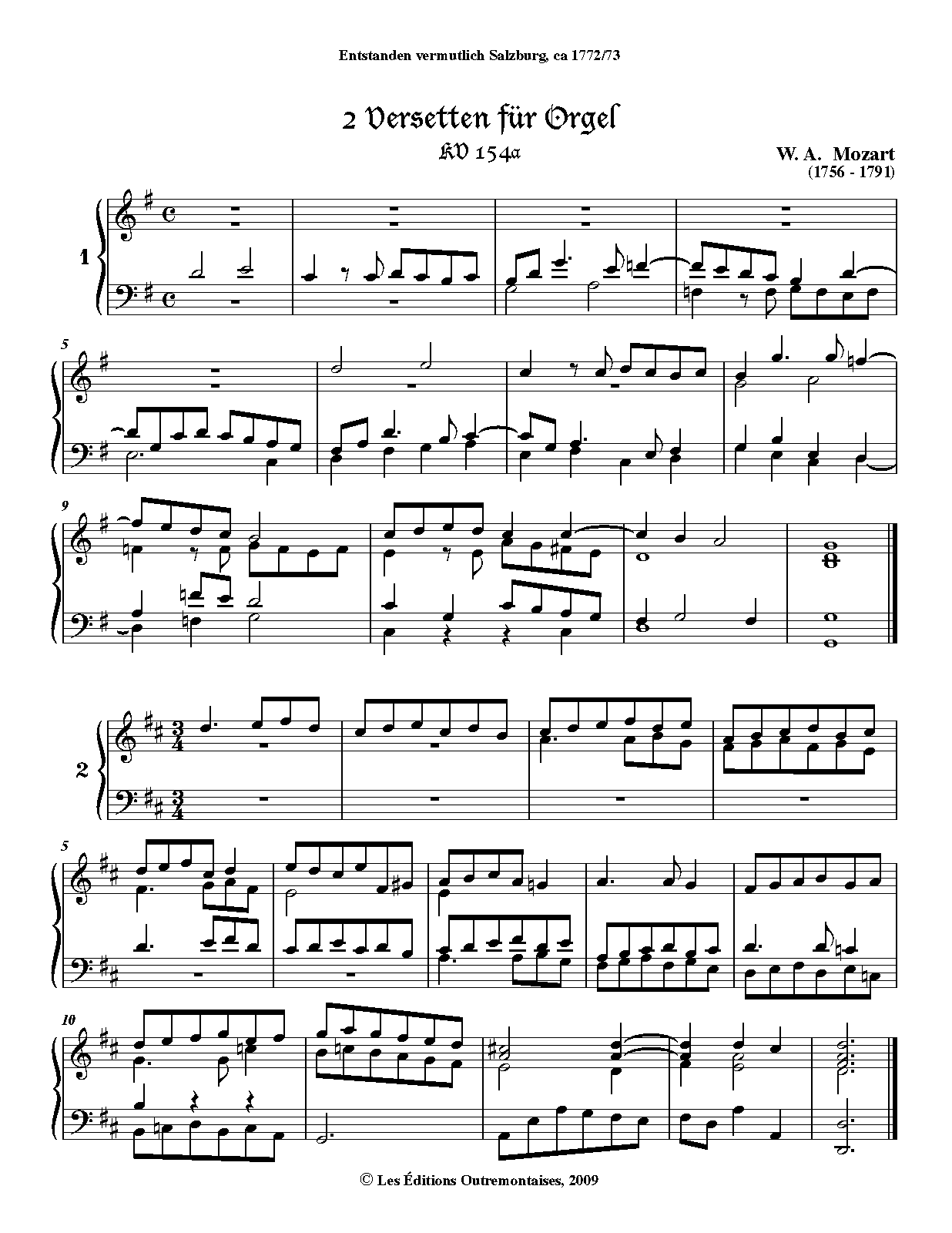 | Work Title | 2 Versetten für Orgel, K.154a |