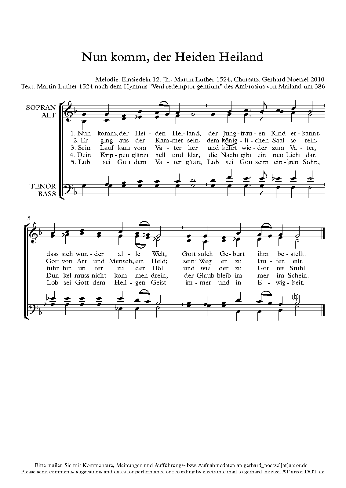| Alternative. Title | ("Nun komm, der Heiden Heiland", "O Heiland, reiß die Himmel auf", "Es kommt ein Schiff geladen") |