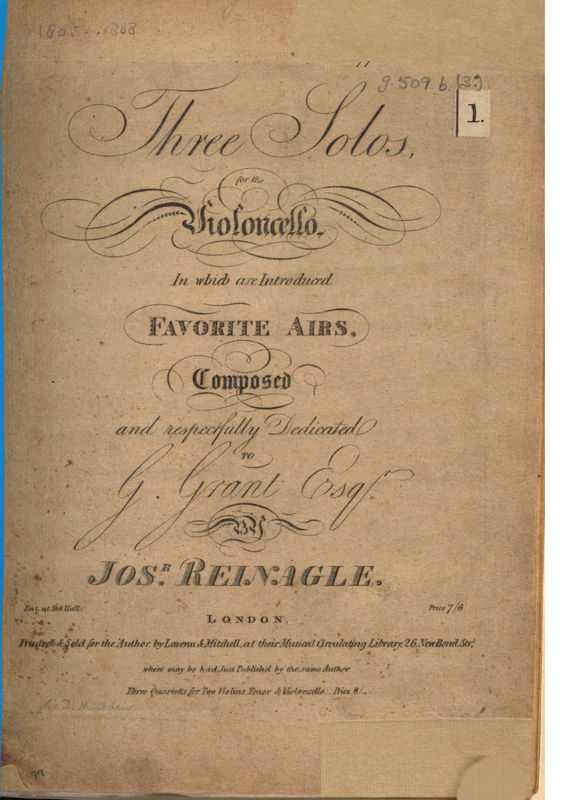 | Alternative. Title | Three Solos, for the Violoncello. In which are Introduced Favorite Airs |