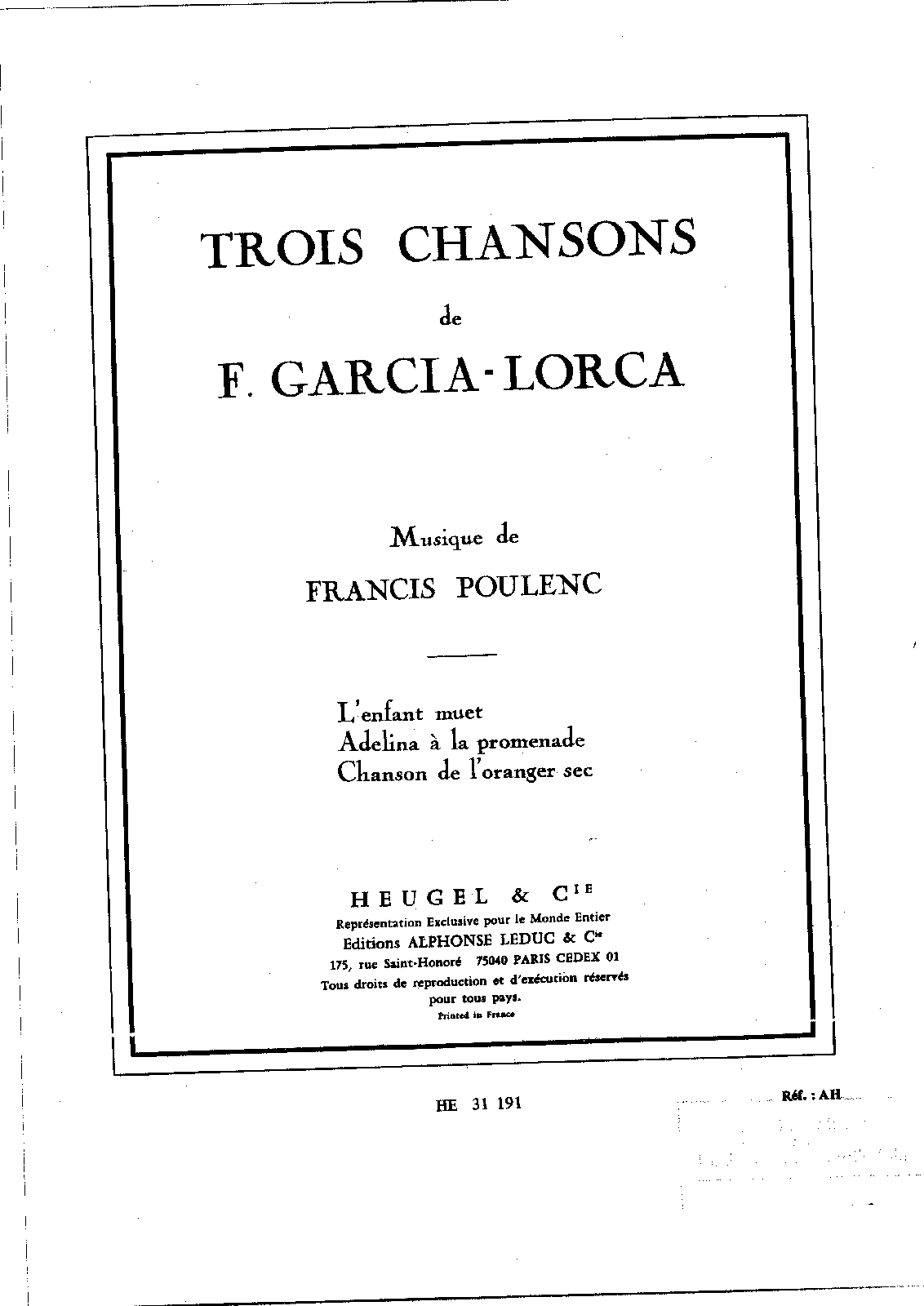 Publisher. Info. Paris: Heugel, 1947. Plate H. 31191.