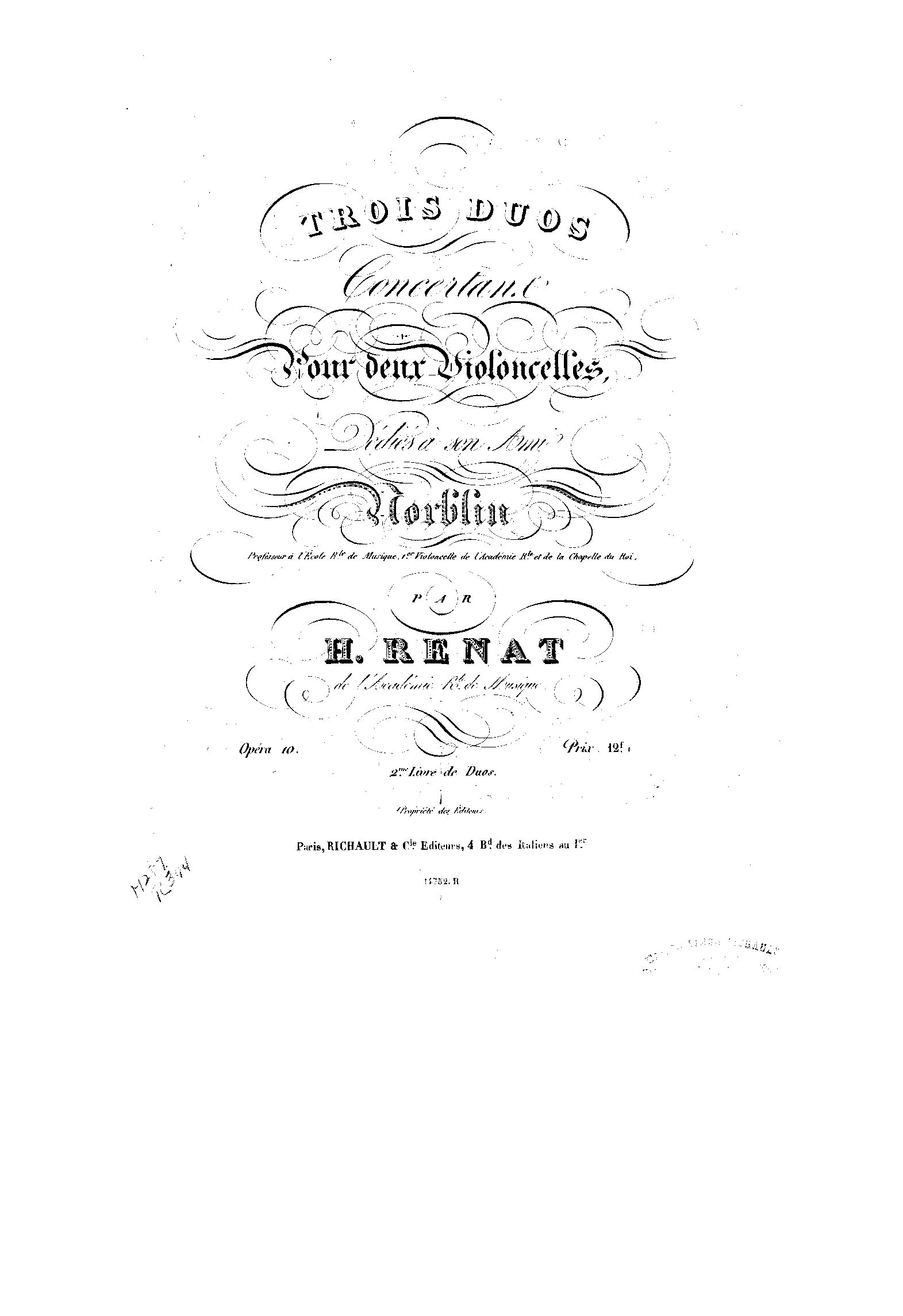 | Alternative. Title | Trois duos concertans pour deux violoncelles. Opéra 10. 2me livre de duos. |