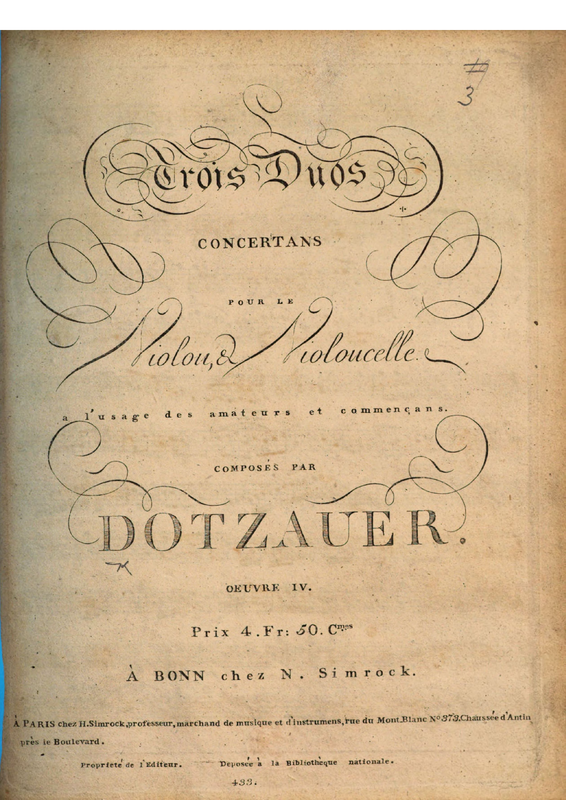 | Alternative. Title | Trois Duos concertans pour le Violon, & Violoncelle- à l'usage des amateurs et commençans |
