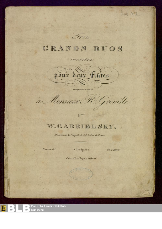 | Alternative. Title | Trois grands duos concertans pour deux flutes |