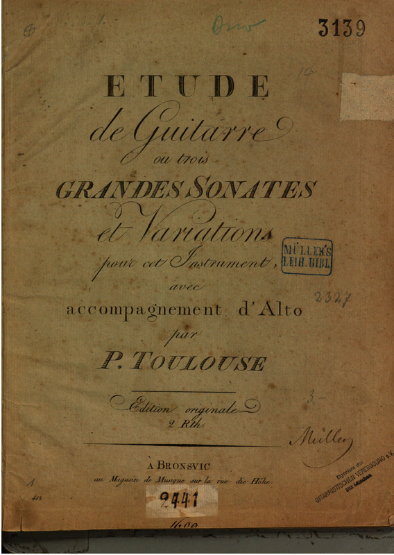 | Alternative. Title | Etude de Guitarre ou trois grandes sonates et variations pour cet instrument, avec accompagnement d'alto |