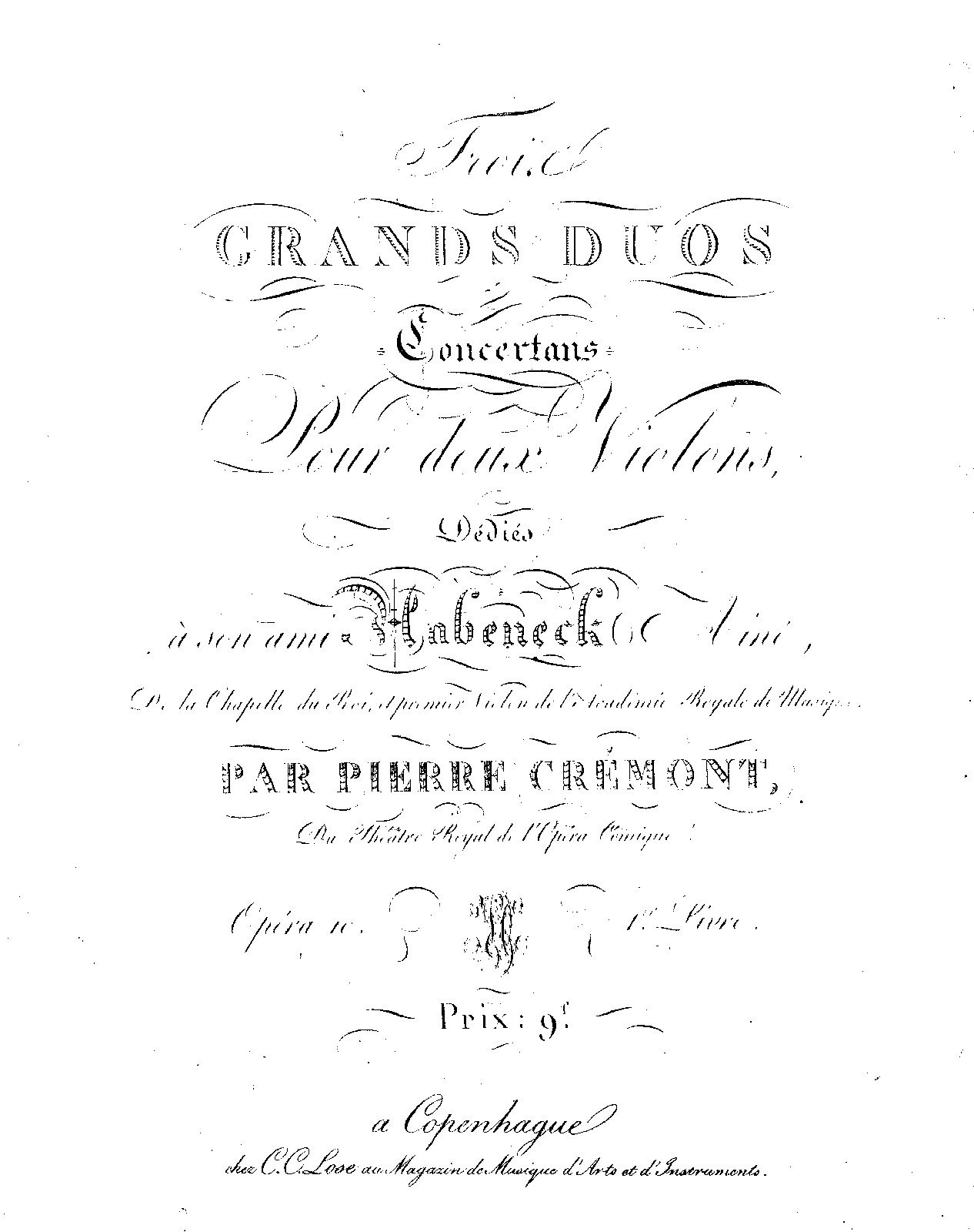 | Work Title | 3 Grands Duos concertants for 2 Violins |