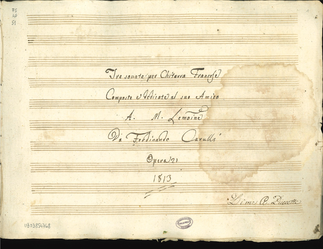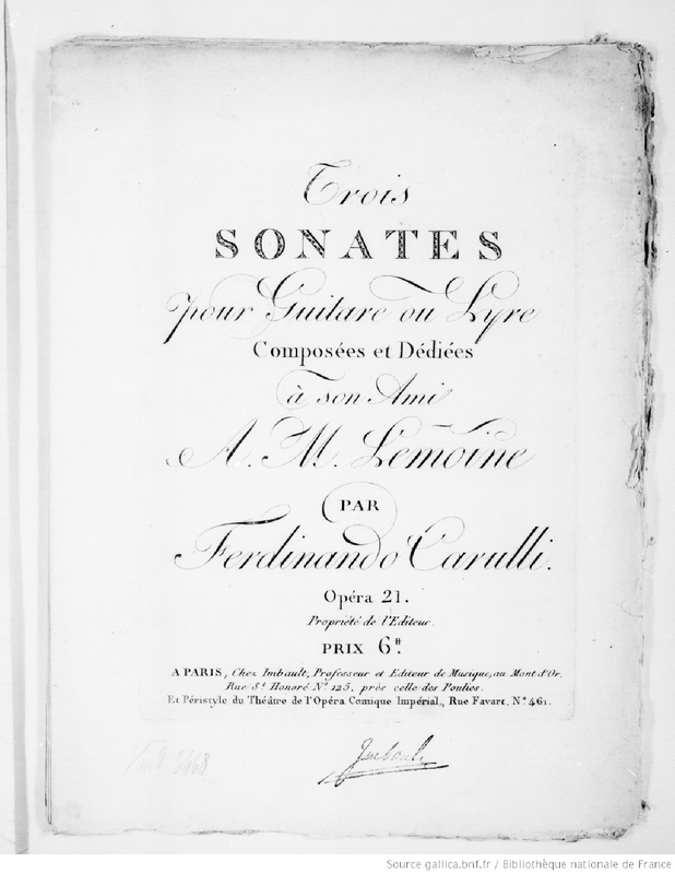 | Alternative. Title | Tre sonate per chitarra francese composte e dedicate al suo amico A. M. Lemoine |
