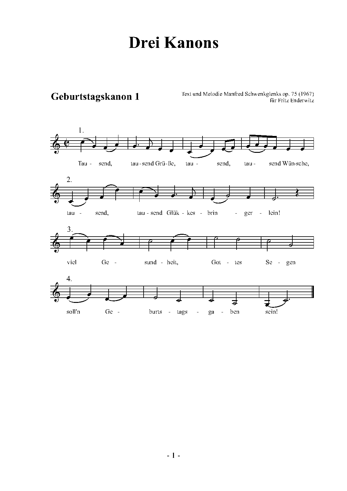 | Movements/SectionsMov'ts/Sec's | 2 Geburtstagskanons, Kanon zu 10 |