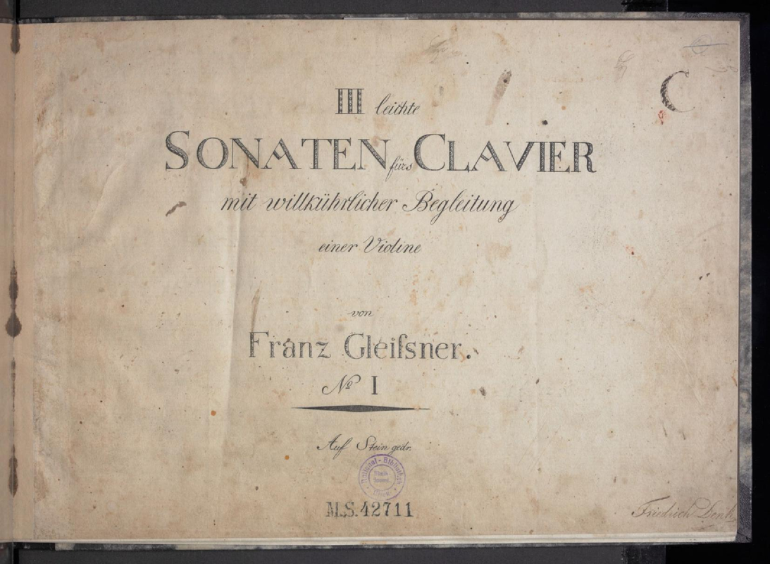 | Alternative. Title | III leichte Sonaten furs Clavier mit willkuhrlicher Begleitung einer Violine |