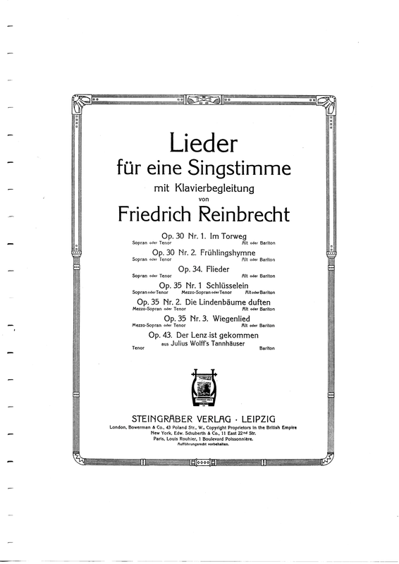| First Publication. | 1910 – Leipzig: Steingräber Verlag |