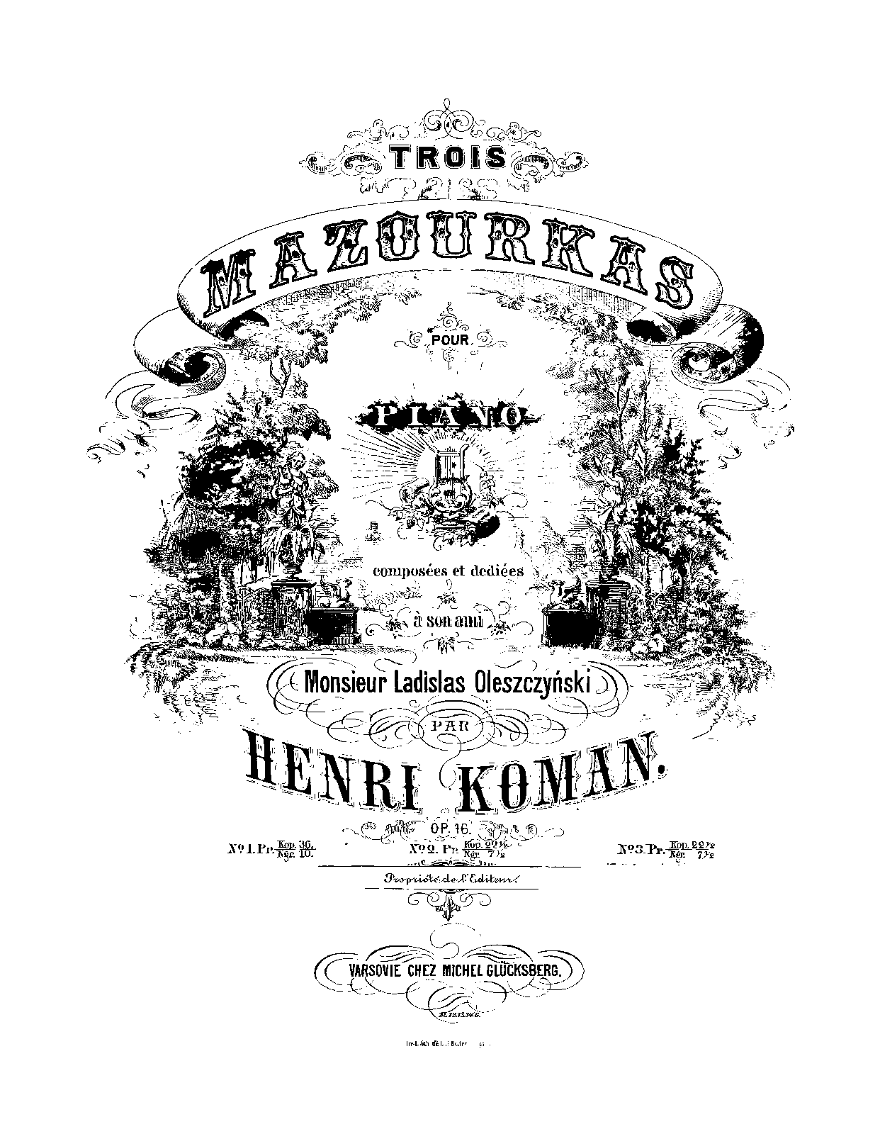 | Dedication | à son ami Monsieur Ladislas Oleszczyński (Władysław Oleszczyński, 1807–1866) |