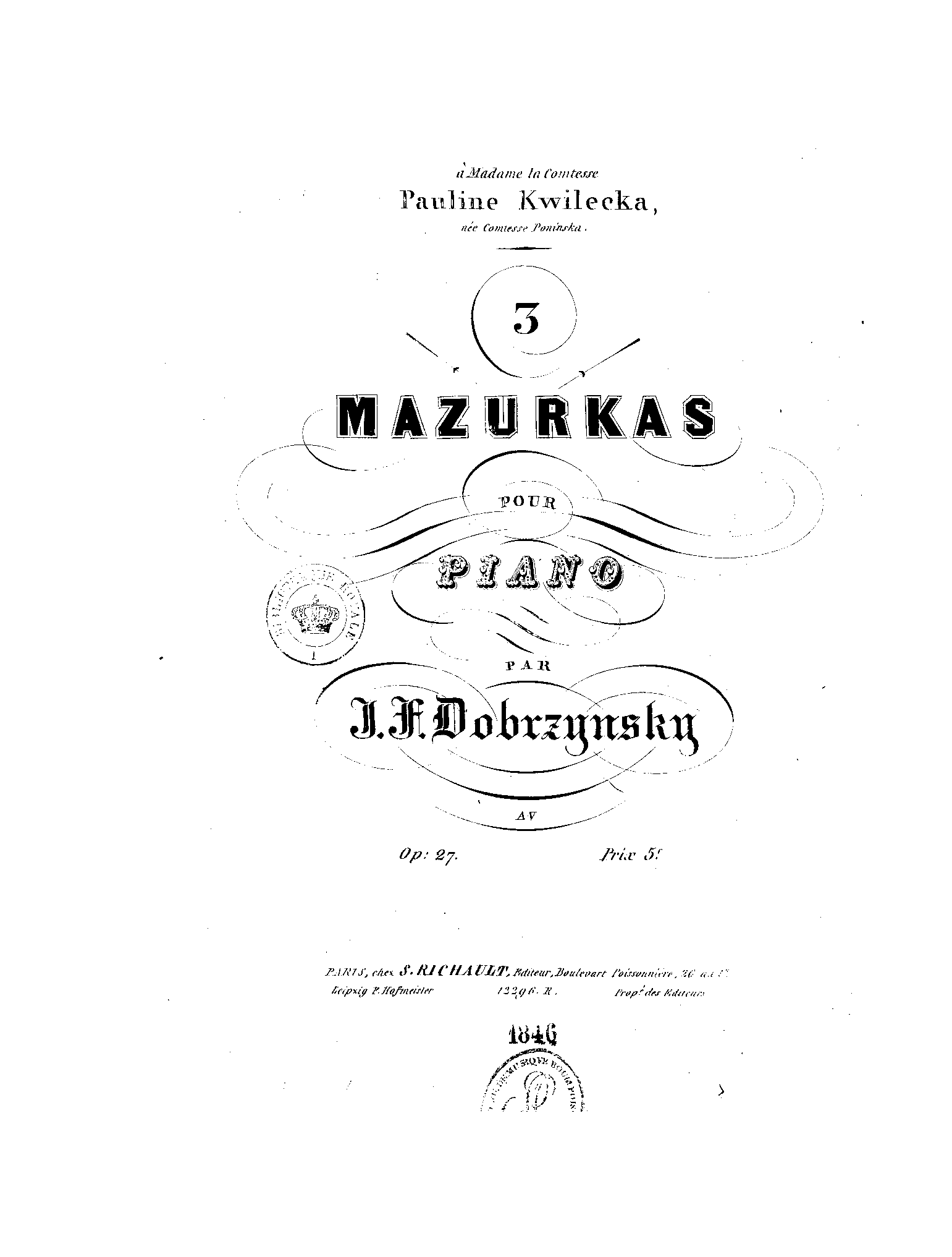 | Dedication | à Madame la Comtesse Pauline Kwilecka, née Comtesse Poninska |