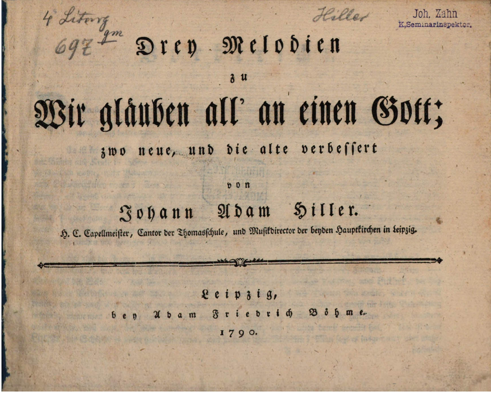| Alternative. Title | Drey Melodien zu Wir gläuben all' an einen Gott; zwo neue, und die alte verbessert |