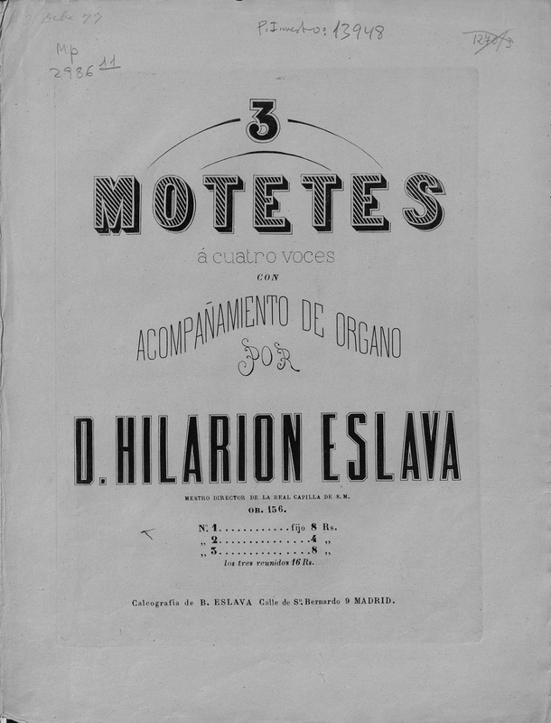 | Alternative. Title | 3 motetes a cuatro voces con acompañamiento de órgano |