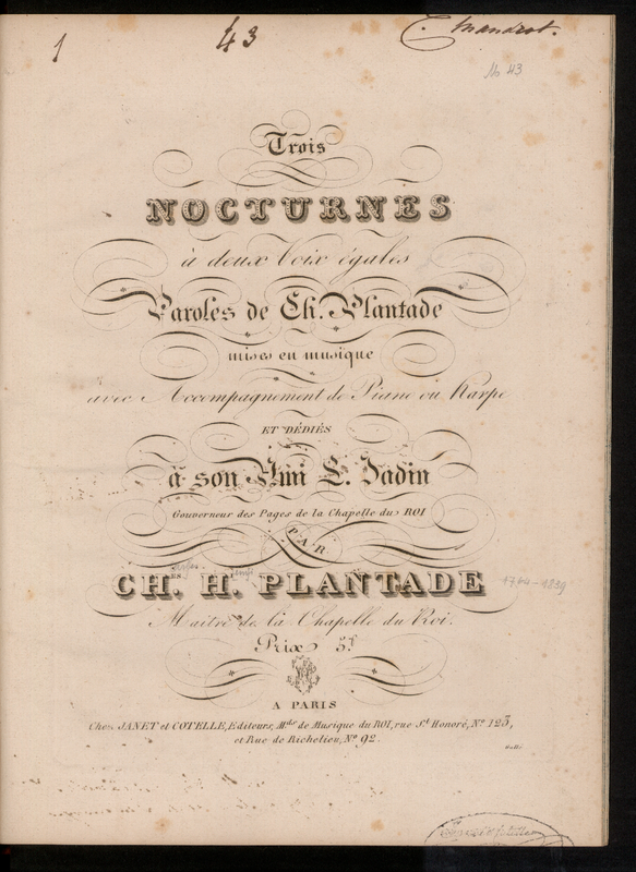 Trois nocturnes à deux voix égales, paroles de Ch. Plantade mises en musique avec accompagnement de piano ou harpe