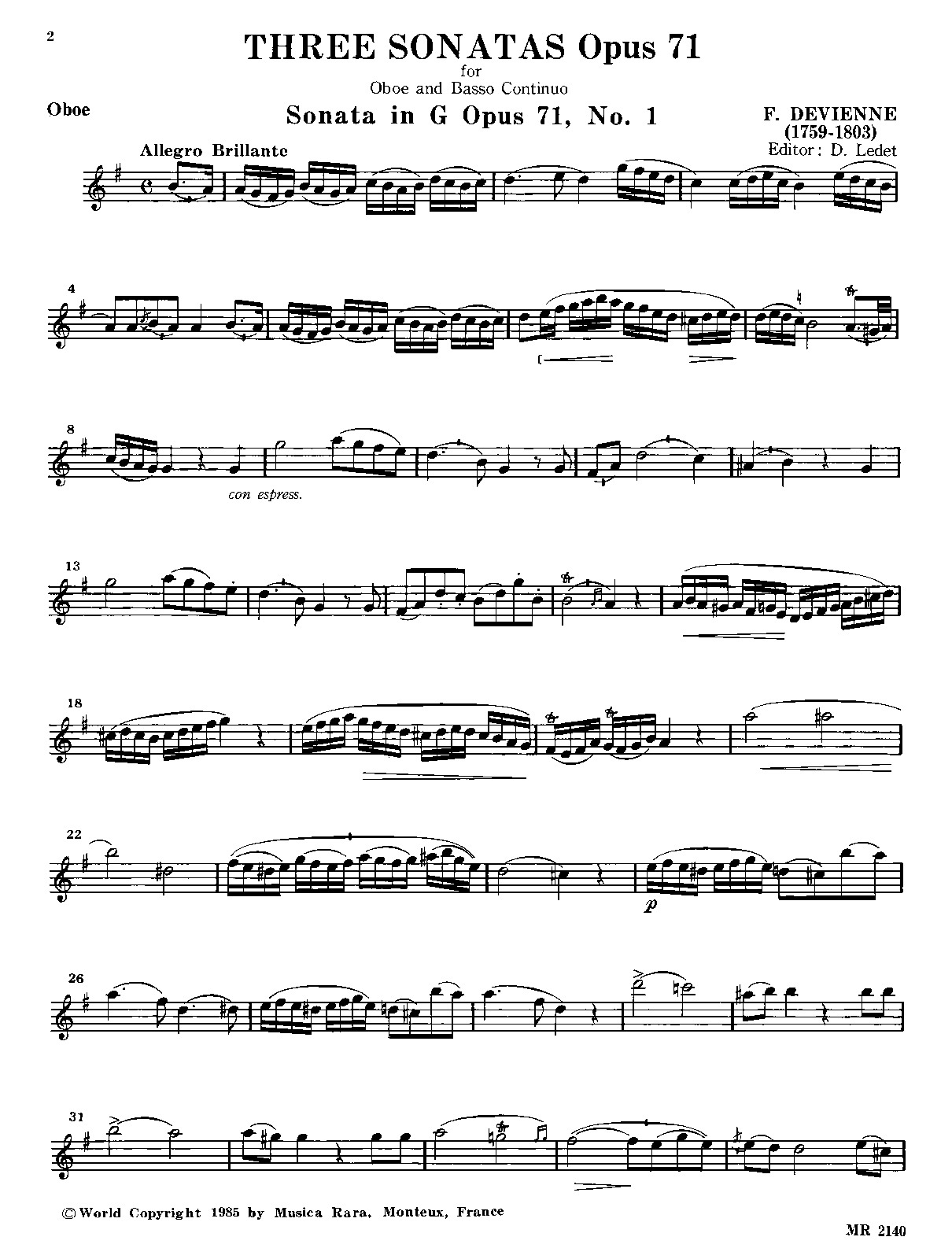 1798 - Paris: Sieber in VI Sonates pour Hautbois et Basse (Nos.4-6)