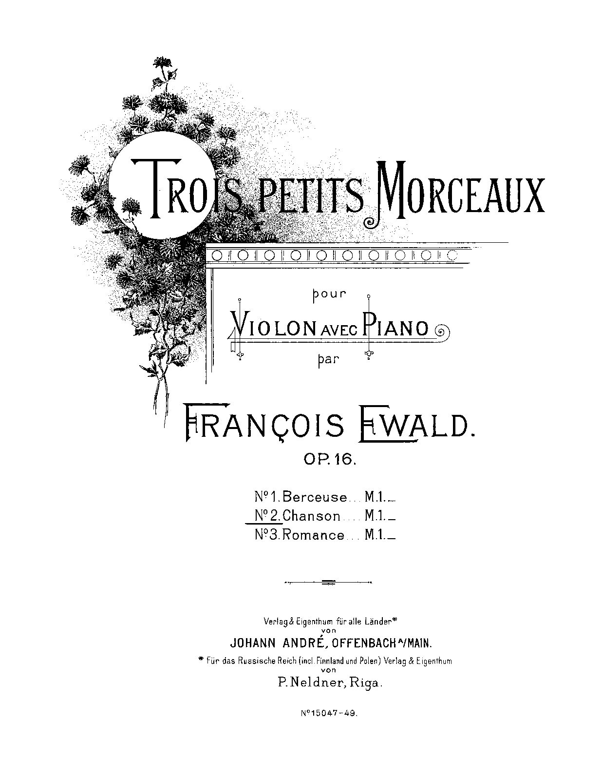 | Genre Categories | Pieces; For violin, piano; Scores featuring the violin; |