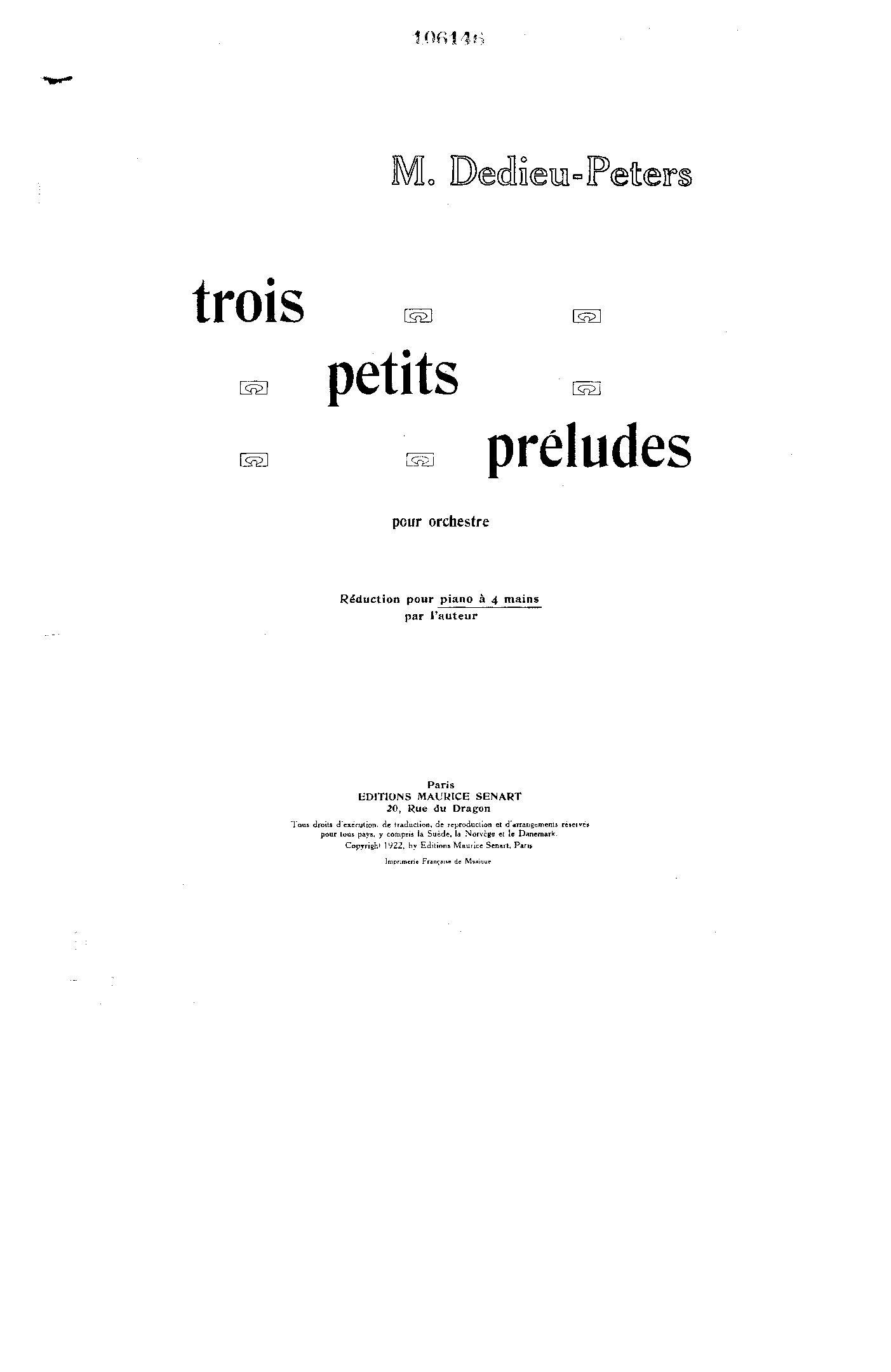 3 Petits préludes pour orchestre (Dedieu-Peters, Madeline)