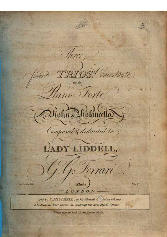 | Alternative. Title | Three favorite Trios, Concertante, for the Piano Forte, Violin & Violoncello |