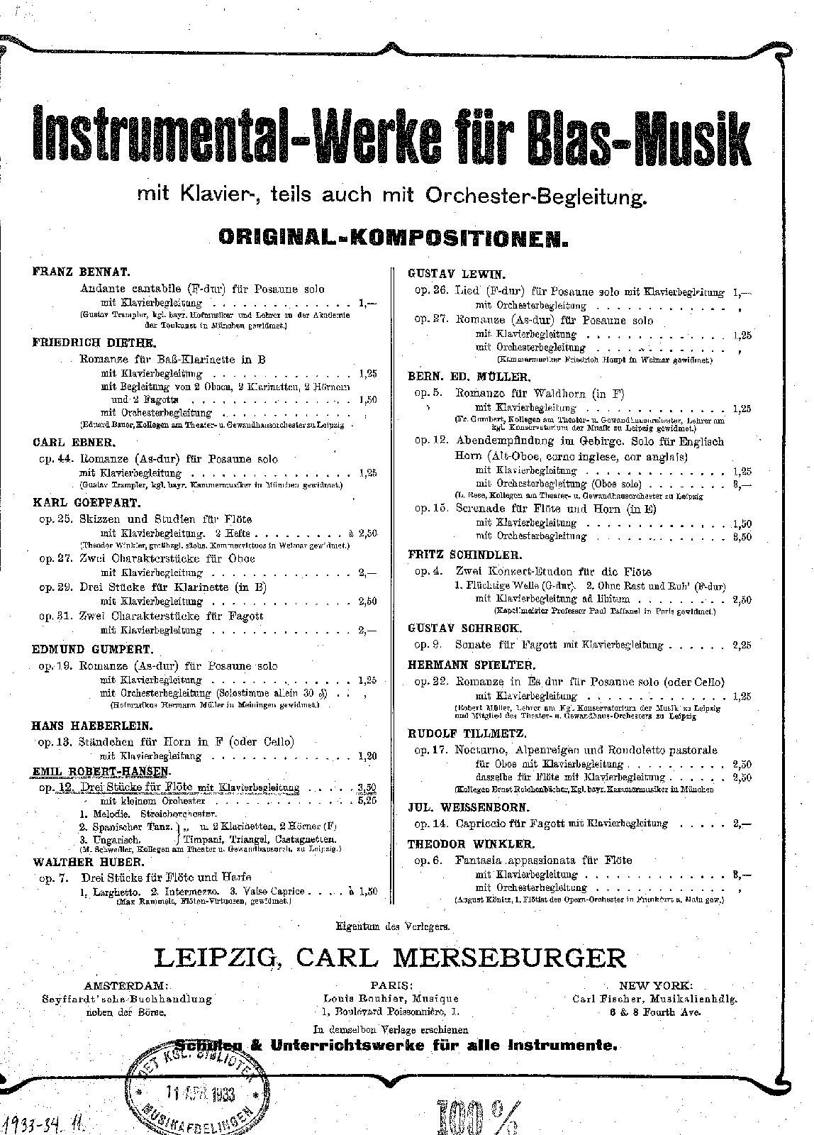 | First Publication. | 1910 – Leipzig: Carl Merseburger |